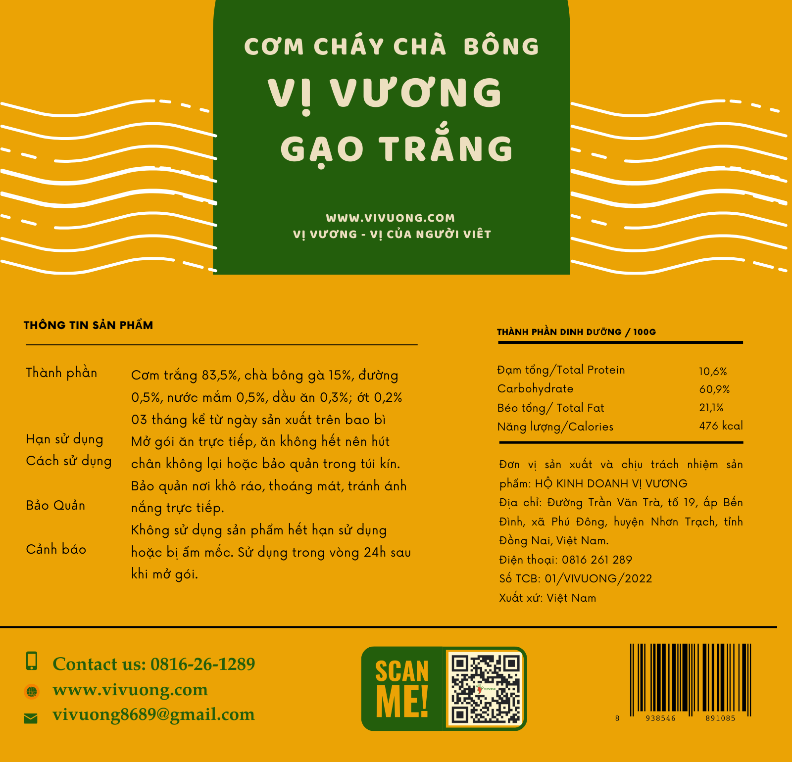 SKU:cc250Cơm cháy chà bông Vị Vương 250g – Gạo trắng (ST) Chà bông gà
