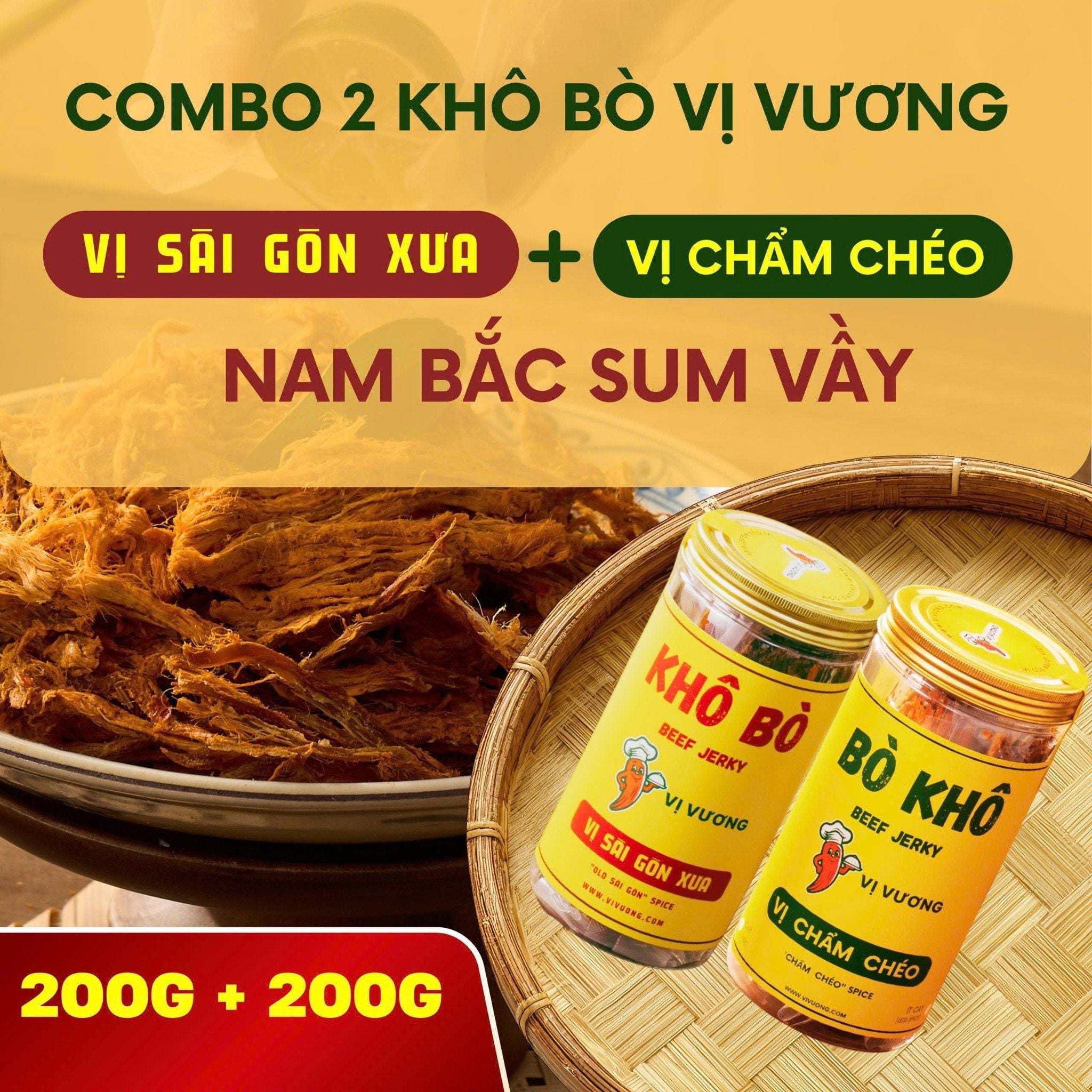Combo 2 Bò Khô (1 vị Chẩm Chéo 200g + 1 vị Sài Gòn Xưa 200g ) - Khô bò miếng cao cấp - không chất bảo quản