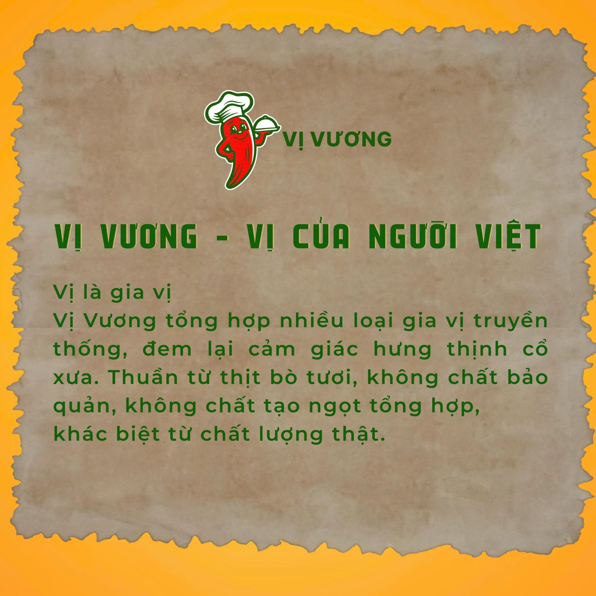 KHÔ BÒ Vị Vương - Vị Sài Gòn Xưa – hòa quyện tinh tế giữa sả, ớt, tỏi, tạo nên hương vị đậm đà, cay nhẹ, hậu vị ngọt thanh – chuẩn vị khô bò giòn của người sành ăn Sài Gòn xưa.